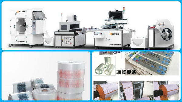 該機(jī)廣泛用于PET、PVC 、轉(zhuǎn)印紙(膜)、地暖膜、地?zé)崮、電熱膜、花紙、薄膜、銘板、柔性線路板、手機(jī)按鍵、3M膠、膠水、薄膜開關(guān)、商標(biāo)鐳射、刮刮卡、不干膠標(biāo)貼、桶裝紙、織帶、鋁箔、銅箔等卷筒材料的絲網(wǎng)印刷。