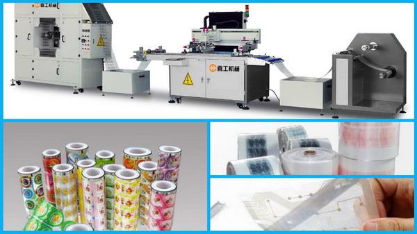該機廣泛用于PET、PVC 、轉(zhuǎn)印紙(膜)、地暖膜、地熱膜、電熱膜、花紙、薄膜、銘板、柔性線路板、手機按鍵、3M膠、膠水、薄膜開關(guān)、商標鐳射、刮刮卡、不干膠標貼、桶裝紙、織帶、鋁箔、銅箔等卷筒材料的絲網(wǎng)印刷。